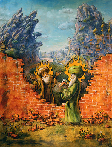 Mullah Nassruddin atop the Mosque—a Sufi tale